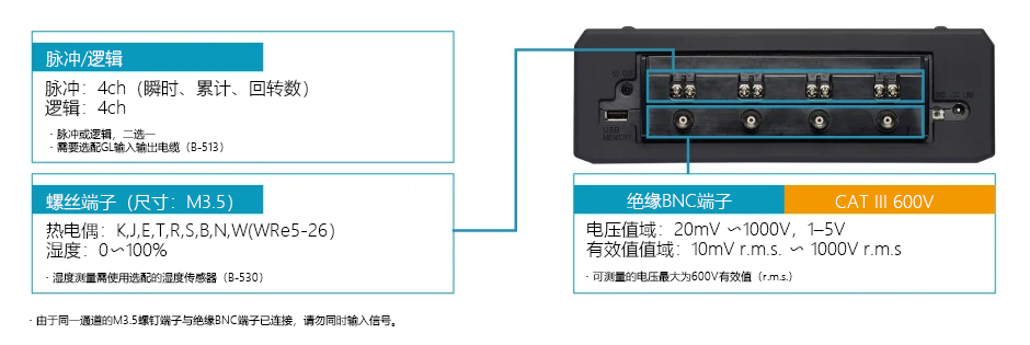 可同时高速测量电压、温度、湿度、逻辑信号和脉冲信号。